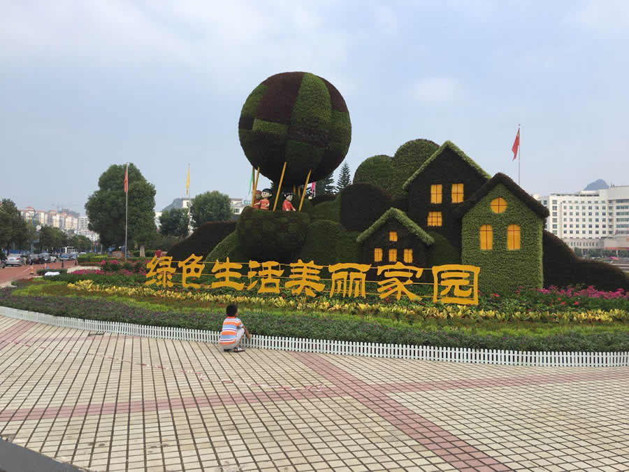 (3)宣傳作用 立體花壇美麗、醒目,常常是人們視線的焦點,在美化環(huán)境的同時又可以通過其生動的造型和鮮明的主題思想,寓教于樂,對民族文化、環(huán)境保護等方面起到一定的宣傳作用。